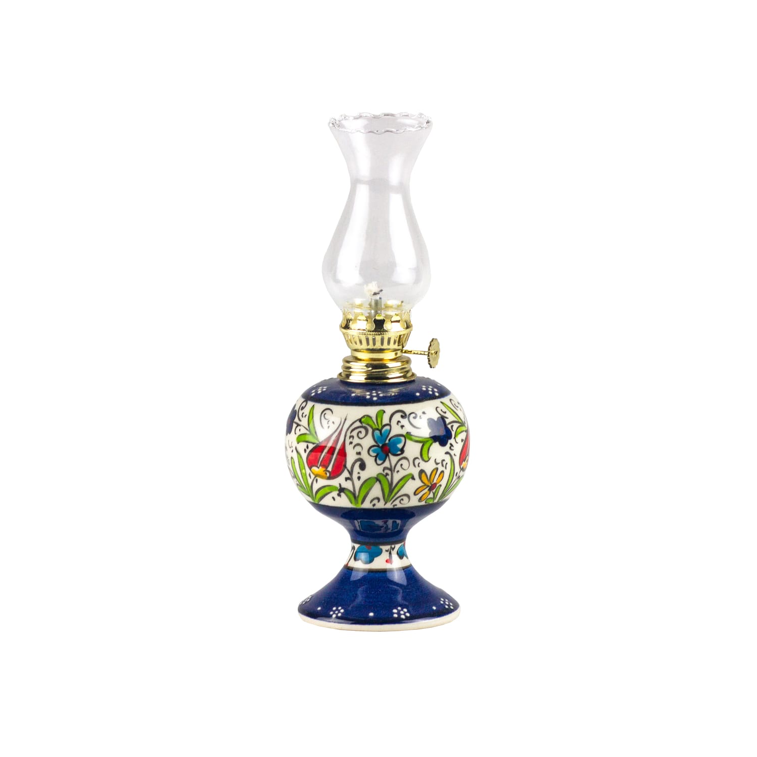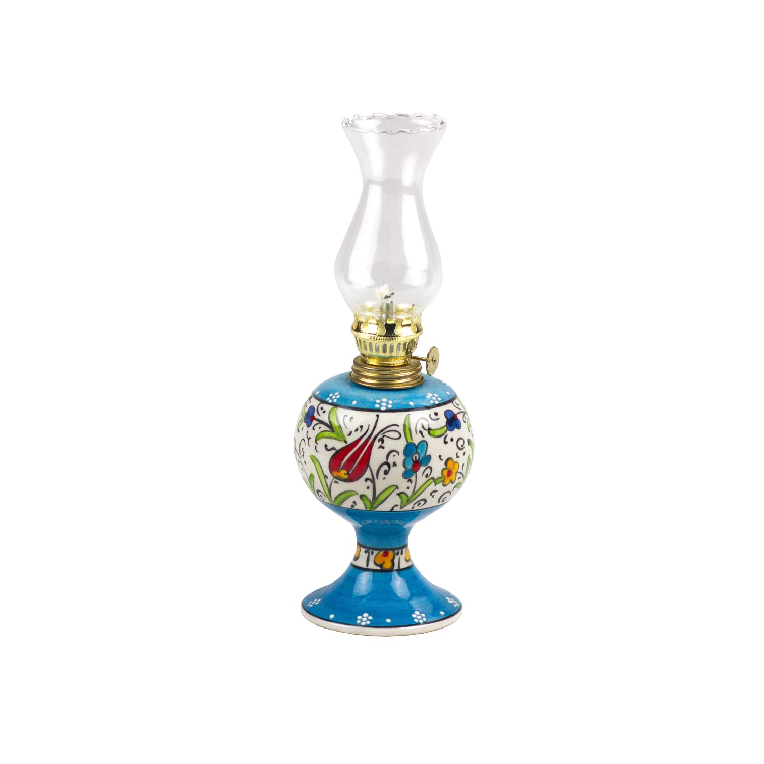 Each gazlamba oil lamp is meticulously handcrafted in our Kütahya workshops, a city renowned for its rich ceramic and tile-making tradition. The intricate patterns, including sable brush-embroidered blue tulips, carnations, daisies, and other elegant motifs, are painted by hand, ensuring that every piece is one-of-a-kind.